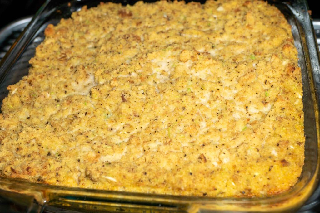 - About 10 oz of cooked chicken, cut into bite-sized pieces (I used half a Costco chicken, so one breast and one leg/ thigh)