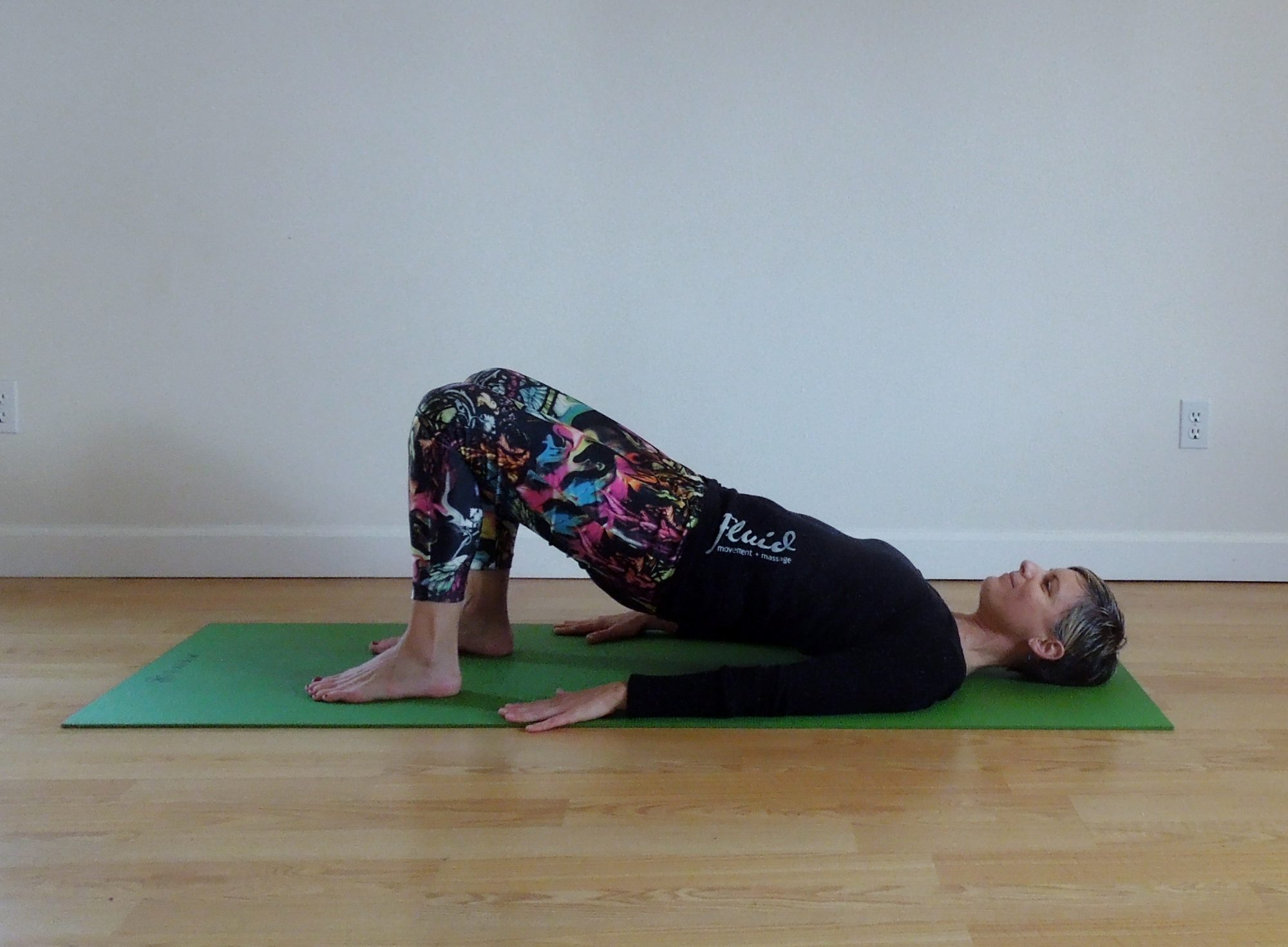 • Exhale as you slowly roll your pelvis up to the ceiling.