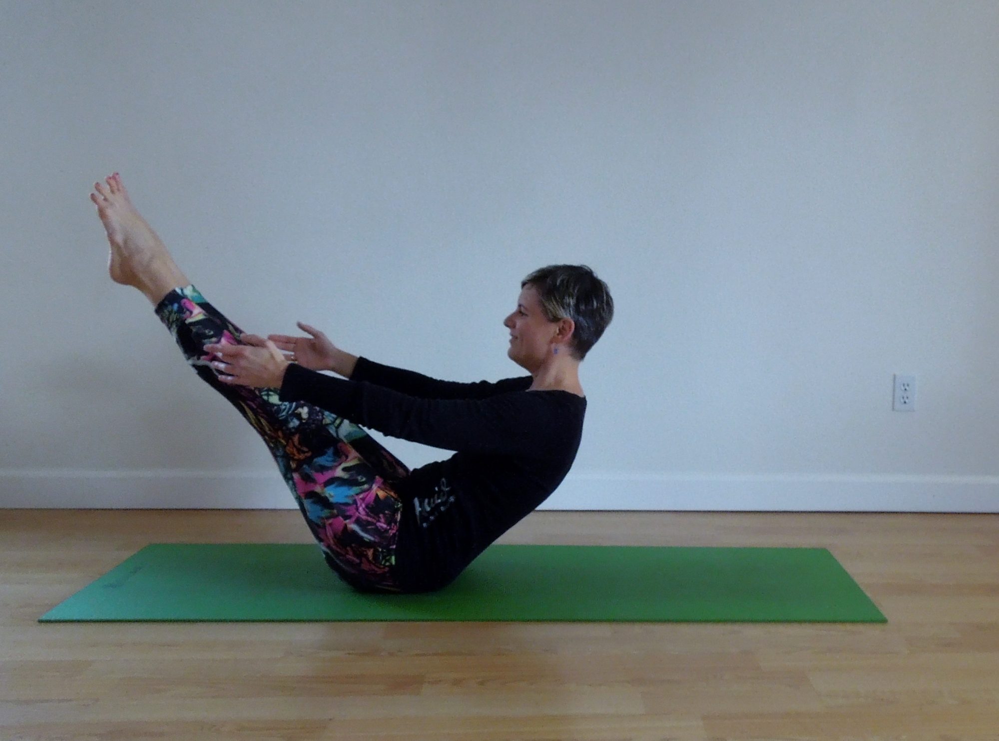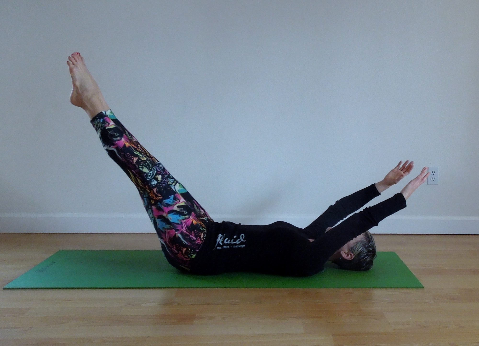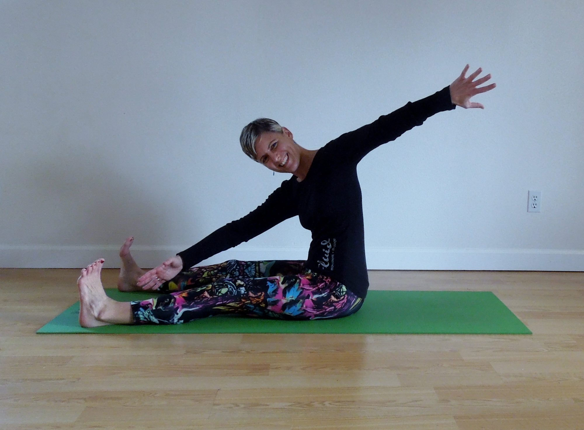 • Circle your arms back by your ears and down to your side as you roll up to seated.