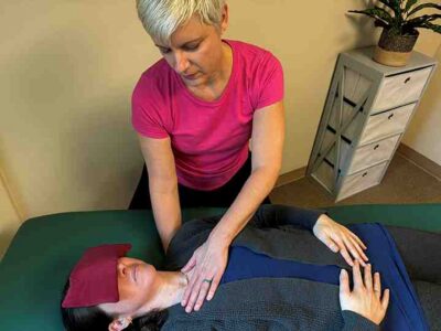 We start with an evaluation. I rest my hands on your head, feet, and along your spine “listening” for the ease of motion and rhythm of the cerebrospinal fluid. Soft-touch techniques are then used to release restrictions in any tissues influencing the craniosacral system. I often end your massage session with a few minutes of CST.